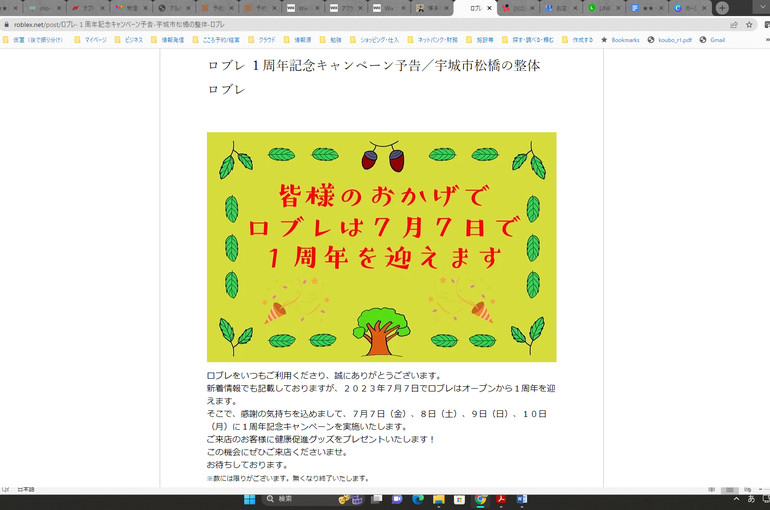 2023年7月7日でリラクゼーション整体ロブレがオープンから1周年を迎えます。